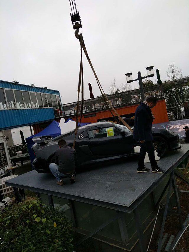 車展會(huì)隨車吊吊裝超級(jí)跑車